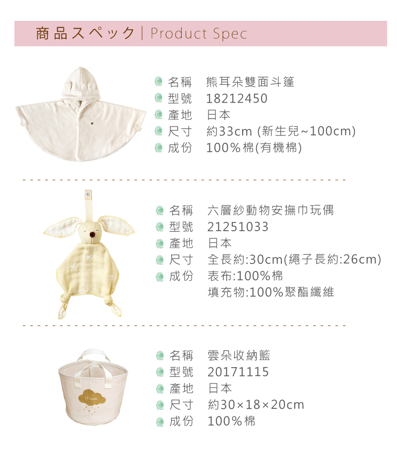 斗篷:約33cm (新生兒~100cm)|安撫玩偶:全長約:30cm(繩子長約:26cm)