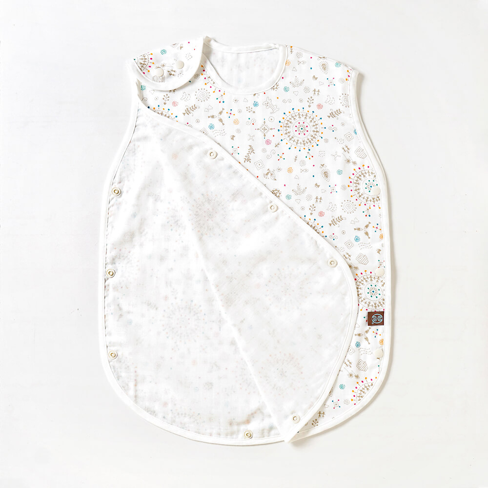 花火祭典中綻放的煙花與舞動的人們,期盼著盛夏的到來。針對悶熱的天氣及體感溫度偏高的火爐寶寶,日本特別設計三層紗系列睡袍/防踢被。超輕薄三層紗親膚、涼爽,軟滑的觸感像是第二層肌膚輕薄舒適。背心造型就算寶寶睡眠時怎麼翻滾也不怕踢被不著涼。 |