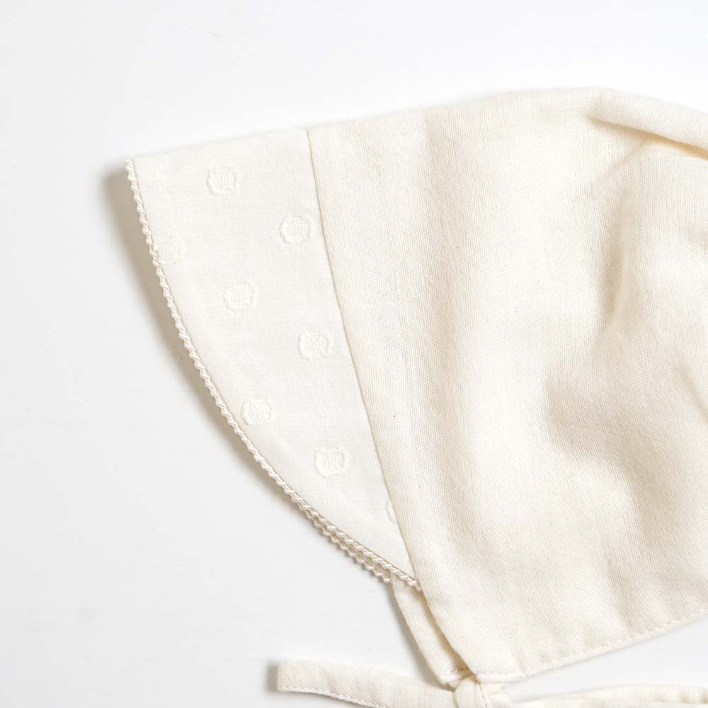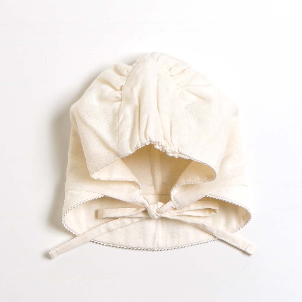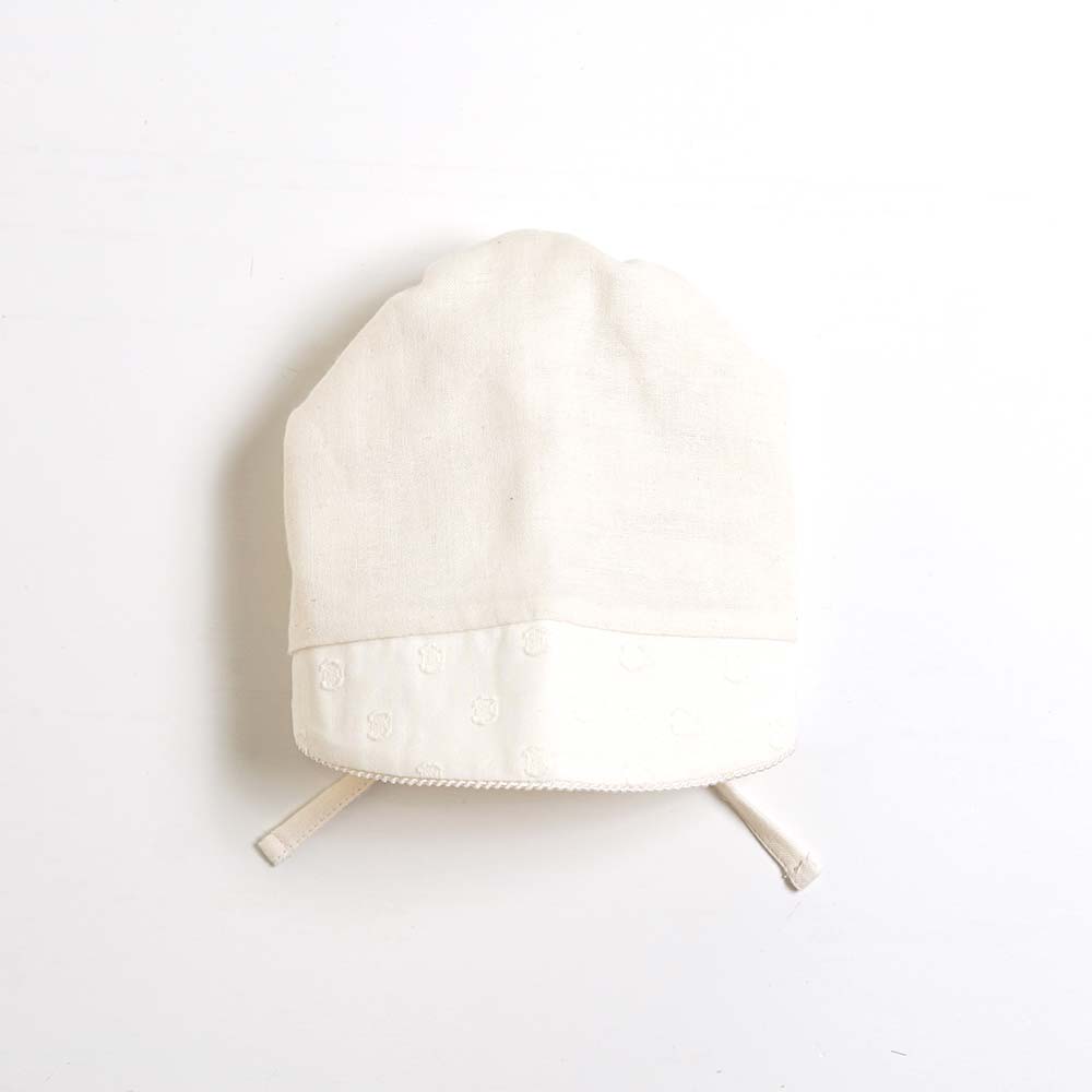 蕾絲邊蝴蝶結綁帶帽(牛奶白).