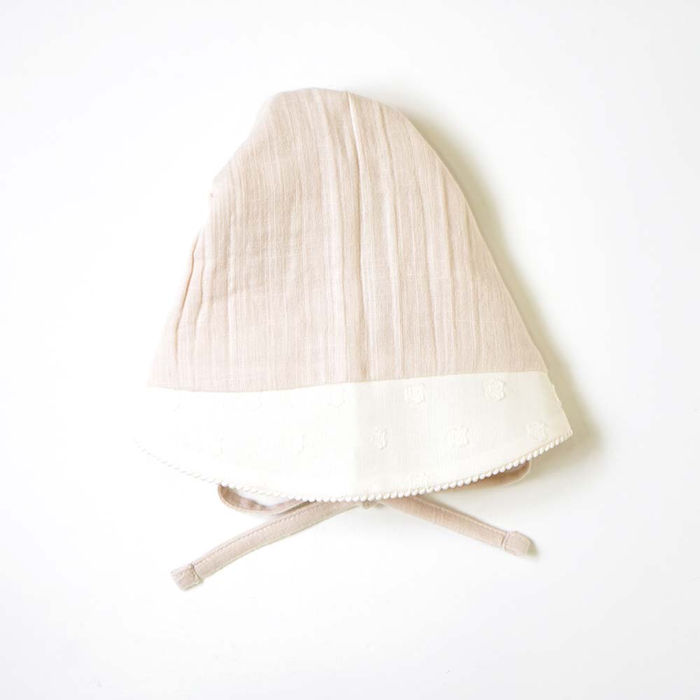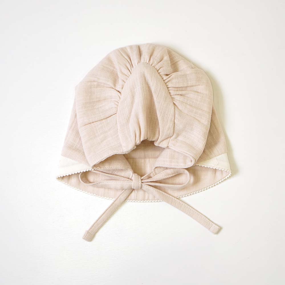 蕾絲邊蝴蝶結綁帶帽(藕粉).