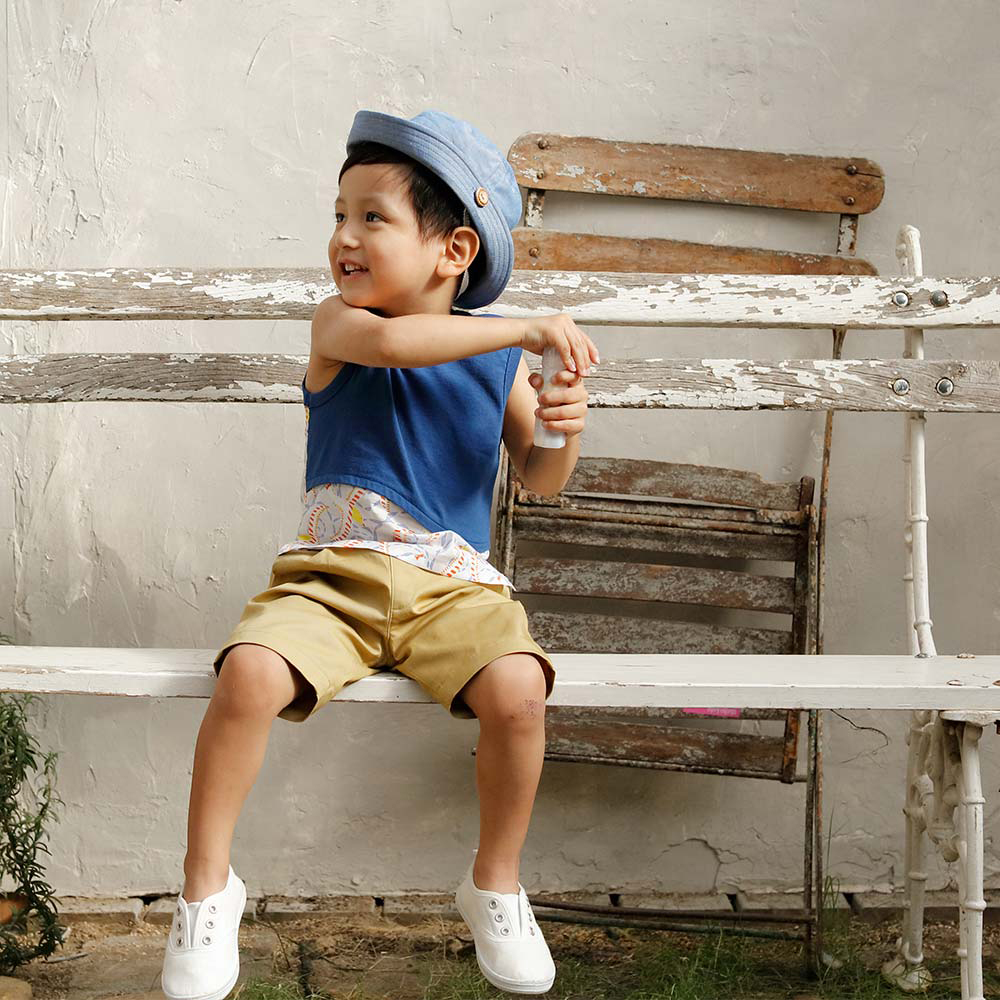 | 預防紫外線從"頭"開始!!雙層紗布製成反摺漁夫帽,無論男女寶寶皆適用。吸汗性強透氣性佳,是寶貝夏天必備的時尚單品 |