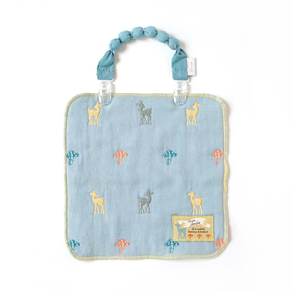 防掉夾:表布:100%棉、填充物:100%聚苯乙烯、固定繩:60%亞麻、40%棉、 夾子:聚碳酸酯 手帕:100%棉(部分有機)