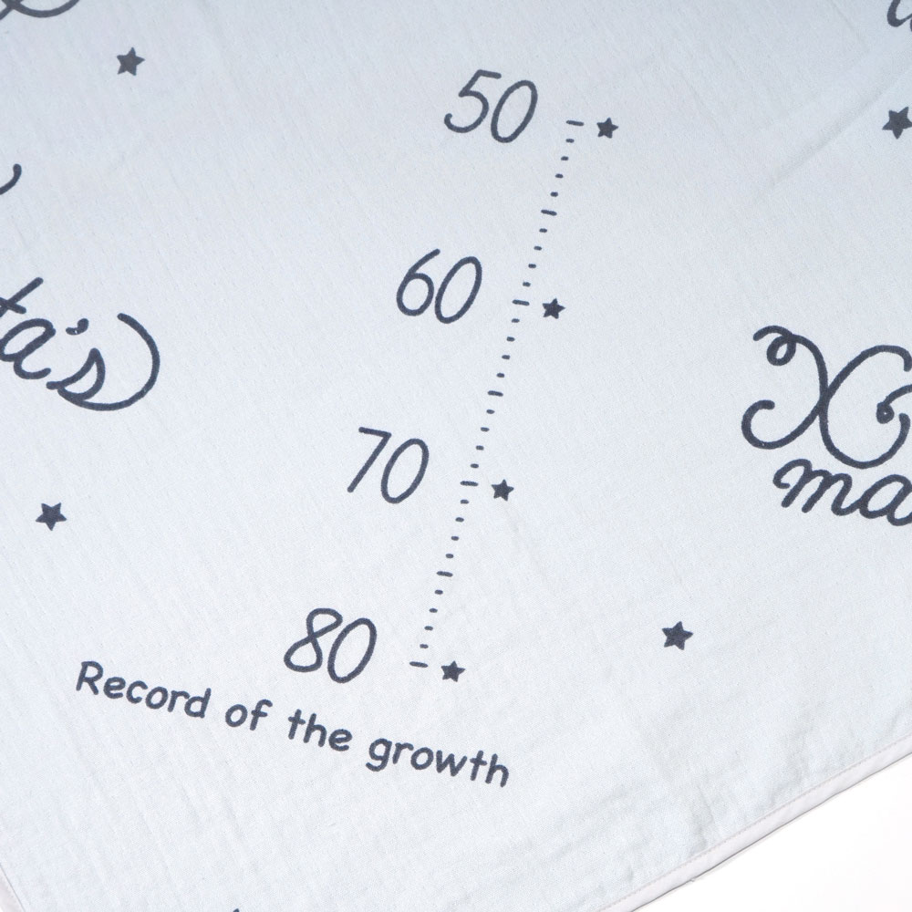 毛巾表面為柔軟紗布、背面為蓬鬆毛圈布,雙重觸感滿足不同使用需求。實用又充滿紀念價值的設計。印有9個可愛的成長紀念與身高刻度,讓寶寶平躺在毛巾上,對準皇冠圖案,就能拍出可愛紀念照,記錄下當時的身高變化,並透過照片留下珍貴回憶。