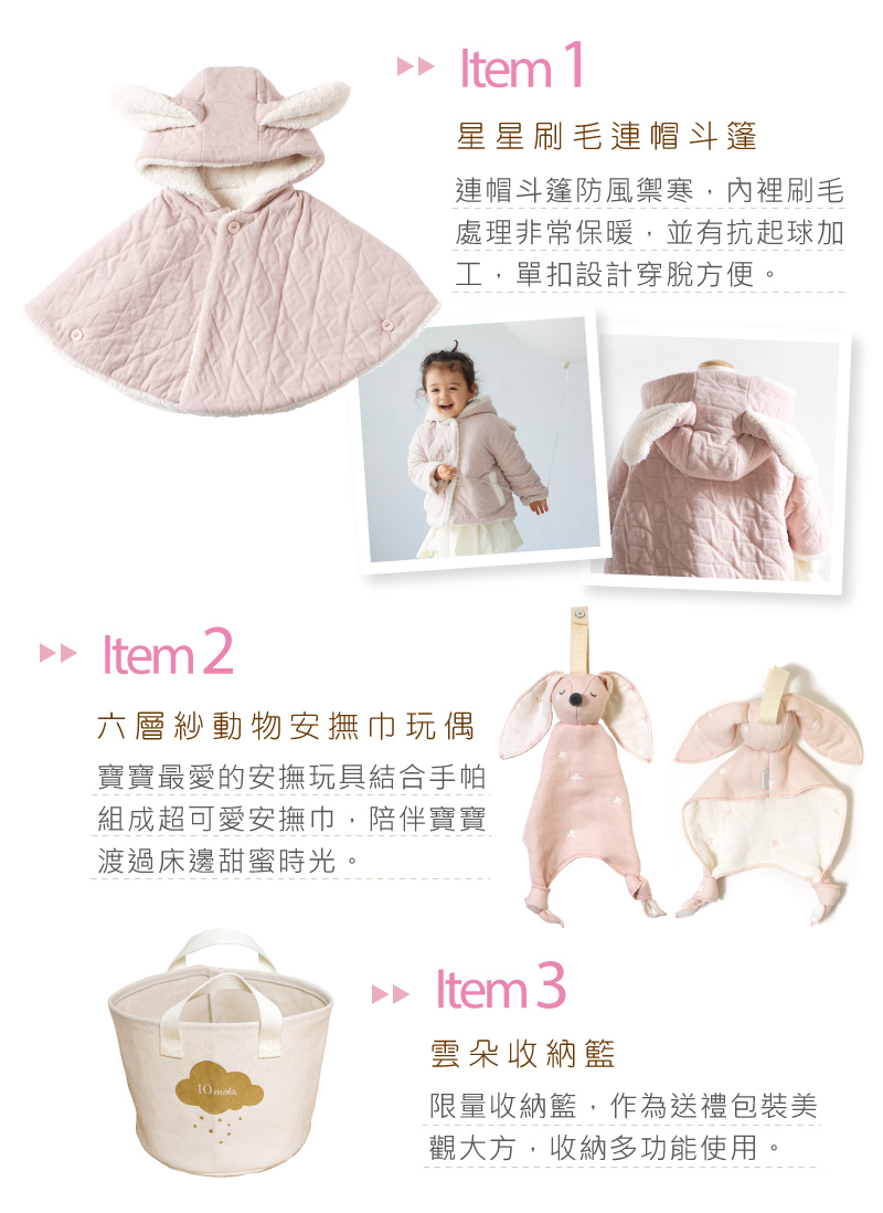 暖萌寶貝斗篷禮物袋組 粉
