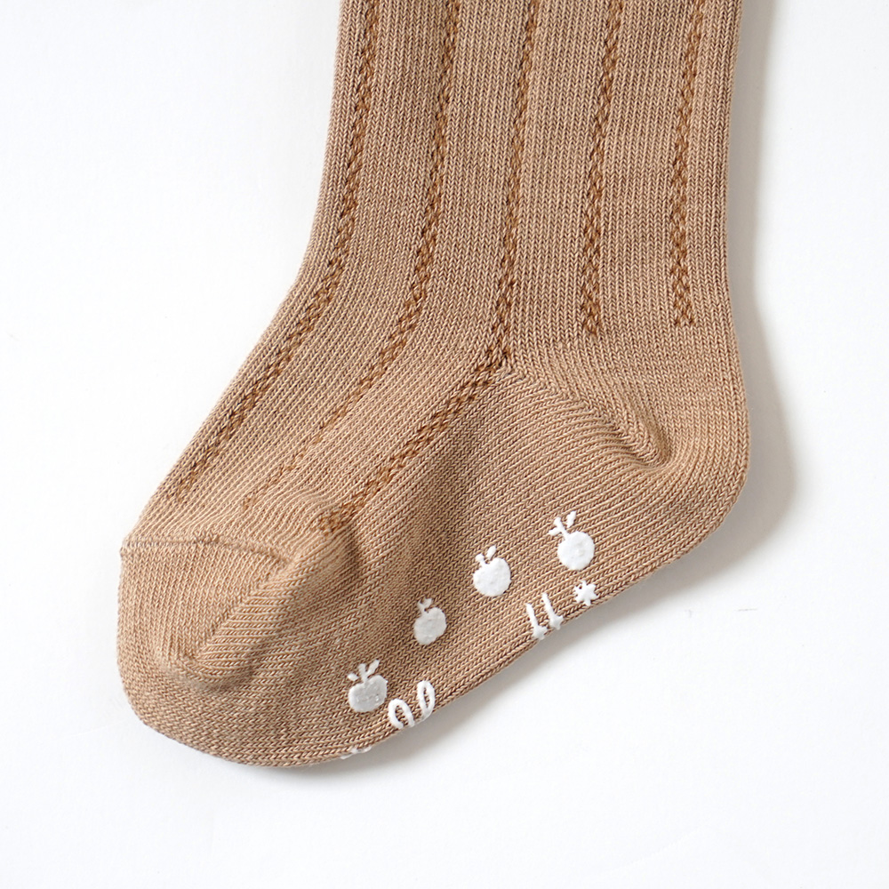 | 有機棉針織小腿肚襪可愛俏皮,小腿肚腿套造型就像隱藏在短褲裡一樣保暖舒適。襪底有小蘋果止滑設計。 |