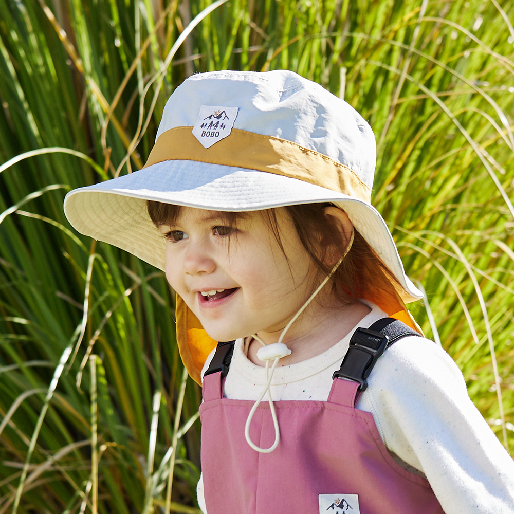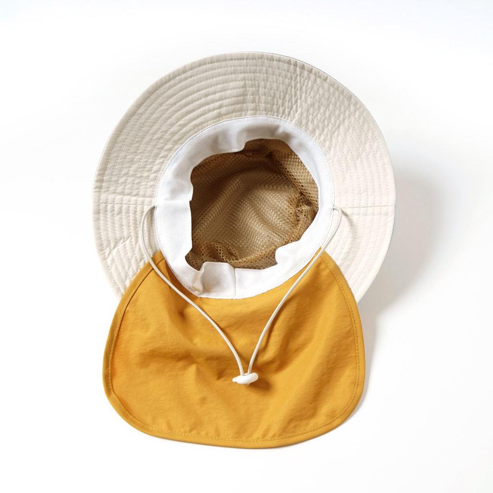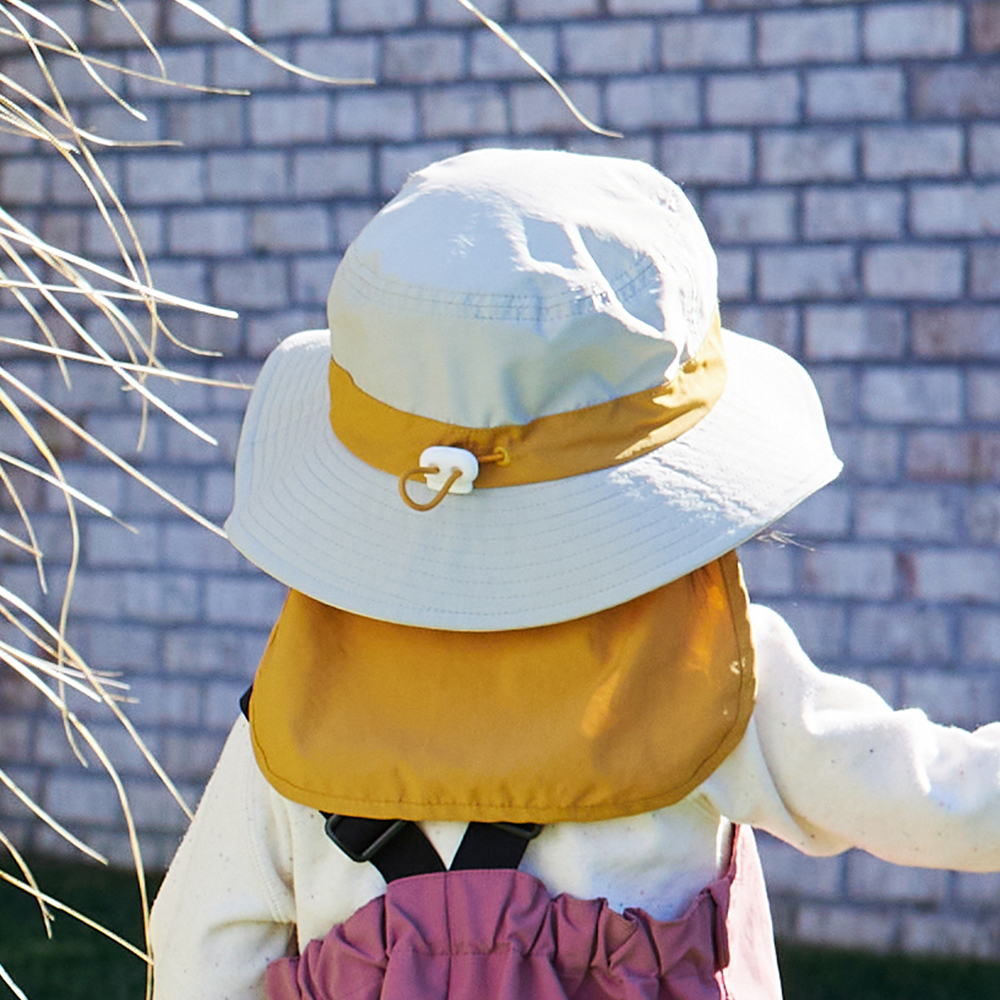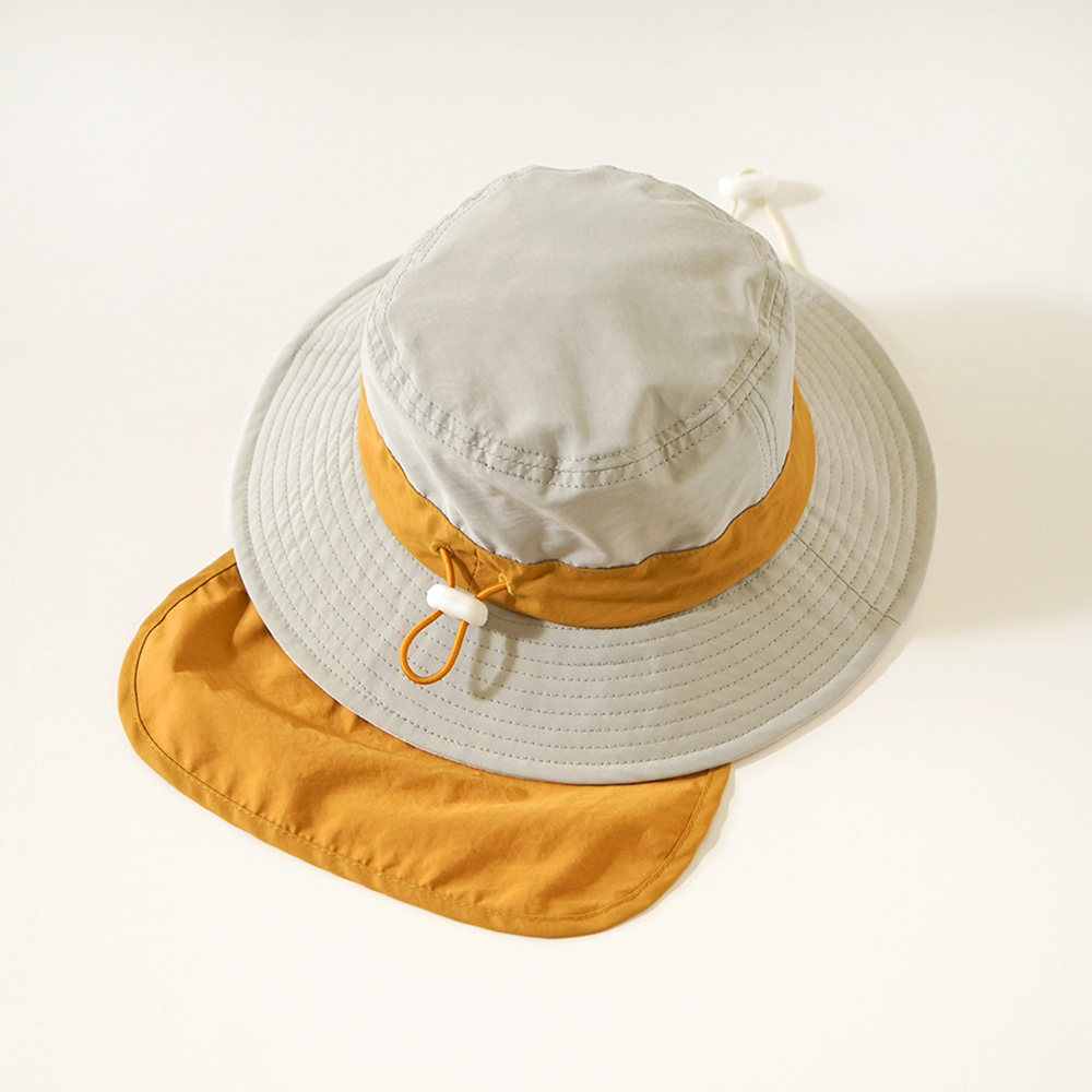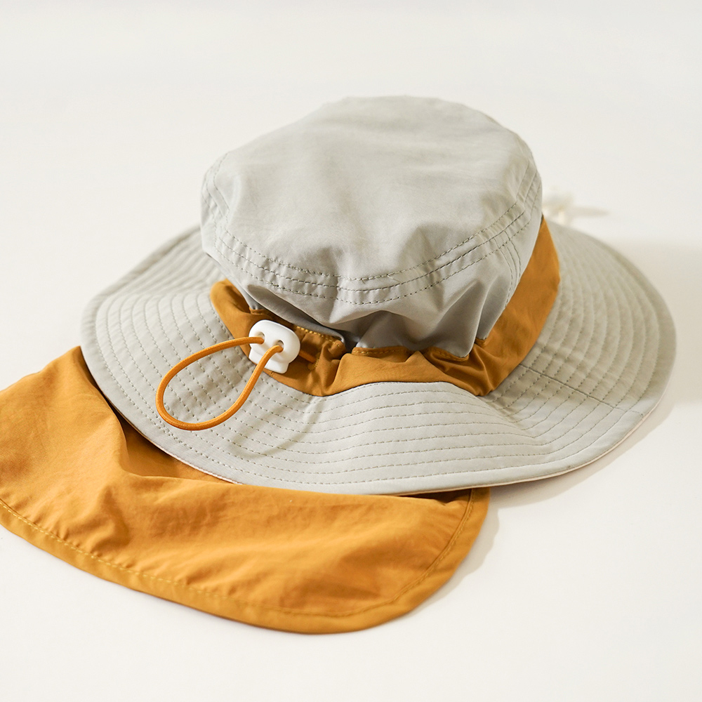 | 預防紫外線從"頭"開始!!紫外線屏蔽率達94%,防水塗層紗布製成抽繩式漁夫帽,方便調整頭圍不易吹落! 頭圍約48cm~52cm皆可使用。帽後布料可防止孩子脖子曬傷,從頭部至脖子照顧的無微不至。 內部夾層可將防曬布料收納,吸汗性強透氣性佳,是寶貝夏天必備的時尚單品 |