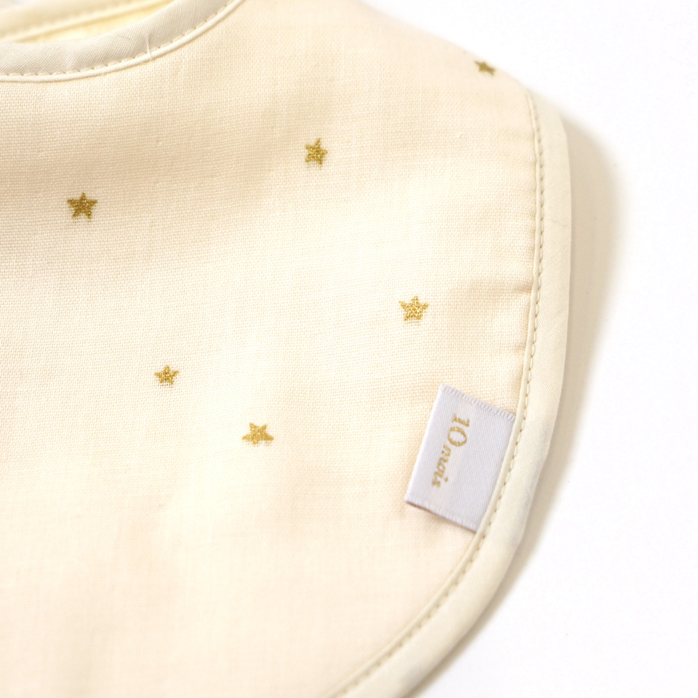 | 柔軟舒適素材做為圍兜、穿搭領巾都很適用,親膚性佳、柔軟舒適。 中間採防水層,可防止口水滲透。 百搭實用圓領造型,有著小星星做點綴 增添寶寶氣質,非常適合作為禮物的可愛圍兜。 |