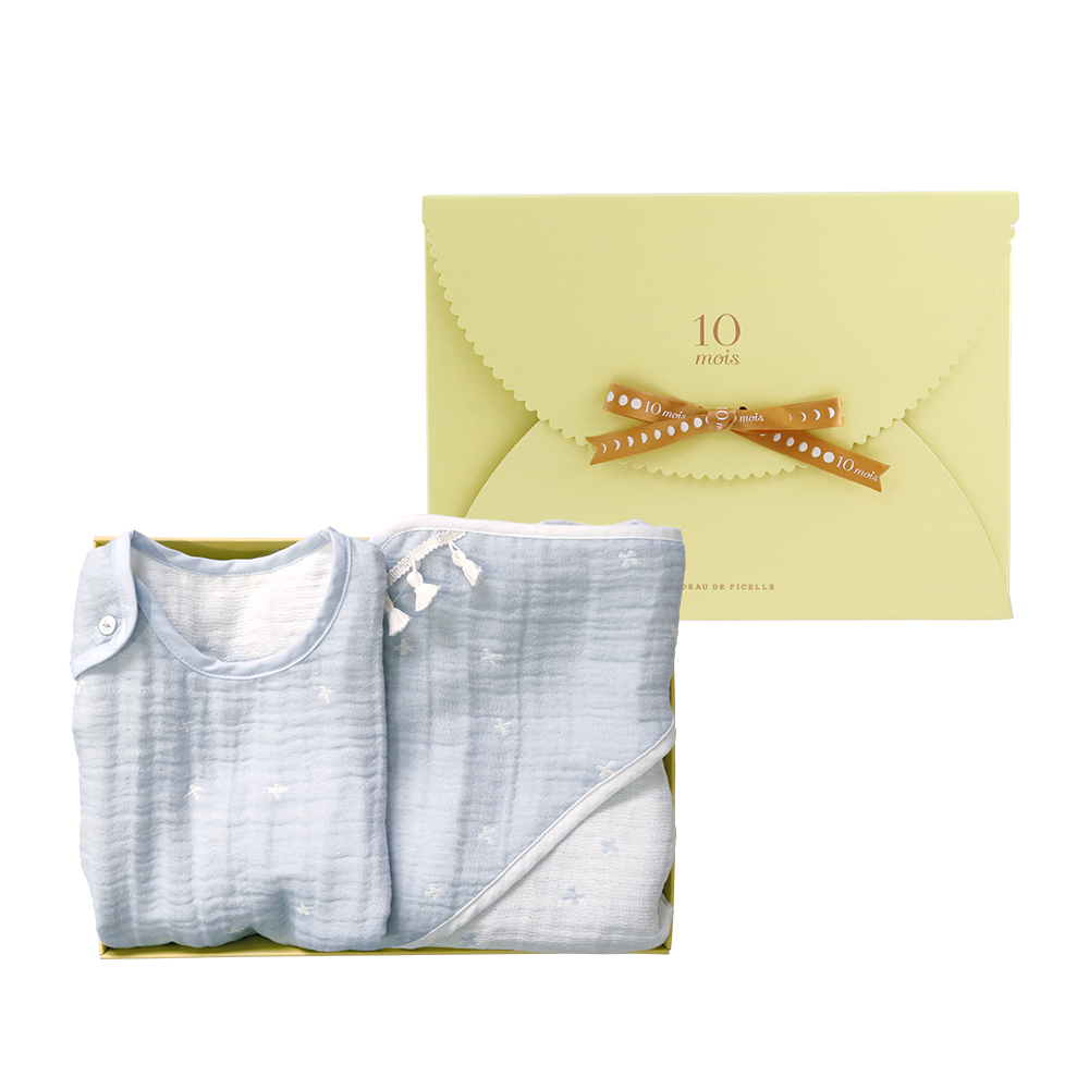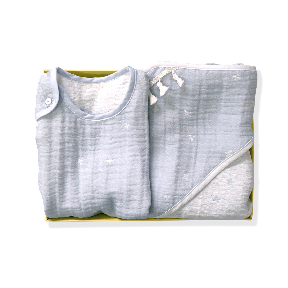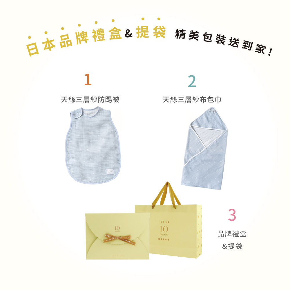 天絲三層紗防踢背心包巾彌月禮盒組 藍
