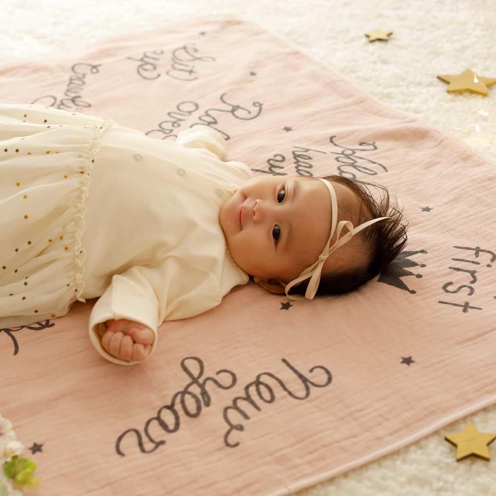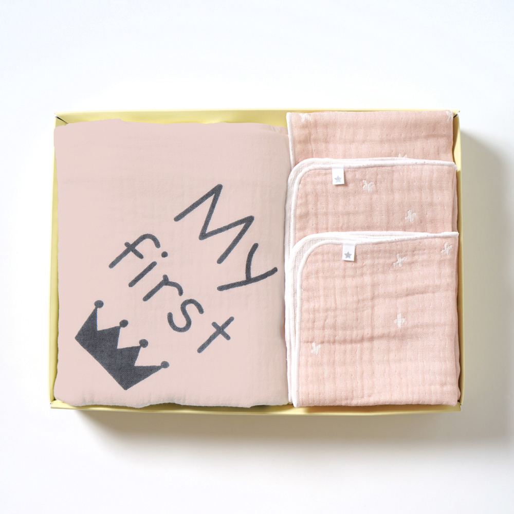 十字星彩天絲三層紗沐浴巾彌月禮盒組 粉