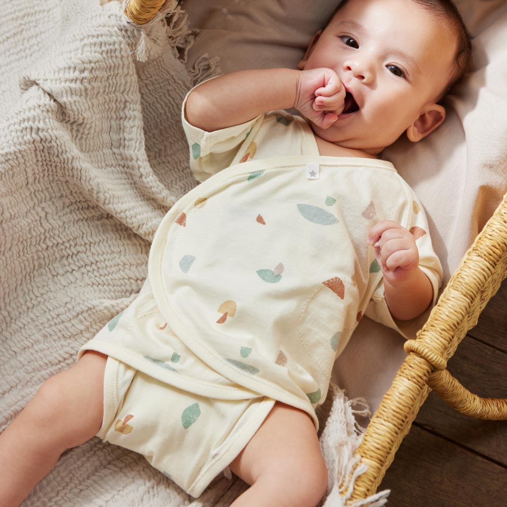| 印刷圖案以特色魔鬼氈的形狀為基礎,以富有韻律的方式排列著山、海、太陽圖案 大自然賦予的繽紛色彩,藏滿淘氣與歡樂。可快速輕鬆更換的寶寶內著 黏貼面分別在襠部、左腋下和右腋下 穿過袖子後, 3 個步驟即可更換衣服,只需打開襠部即可更換尿布,大面積黏貼面讓可隨著寶寶成長而調整衣服鬆緊 柔軟親膚性佳,多層穿搭也貼身舒適。 |
