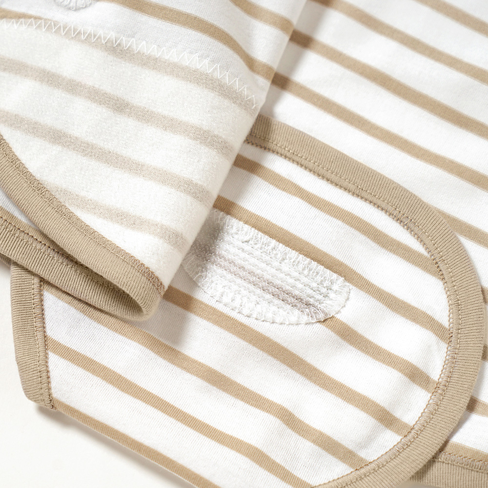 | 可快速輕鬆更換的寶寶內著 黏貼面分別在襠部、左腋下和右腋下 穿過袖子後, 3 個步驟即可更換衣服。 只需打開襠部即可更換尿布。 此外大面積黏貼面讓可隨著寶寶成長而調整衣服鬆緊。 柔軟親膚性佳,多層穿搭也貼身舒適。 採用比普通棉質地柔軟的細綿,無需另外使用織物柔順劑,柔軟速乾。 |