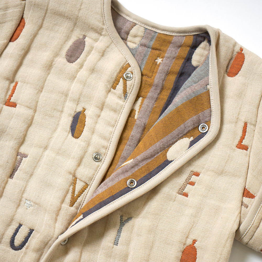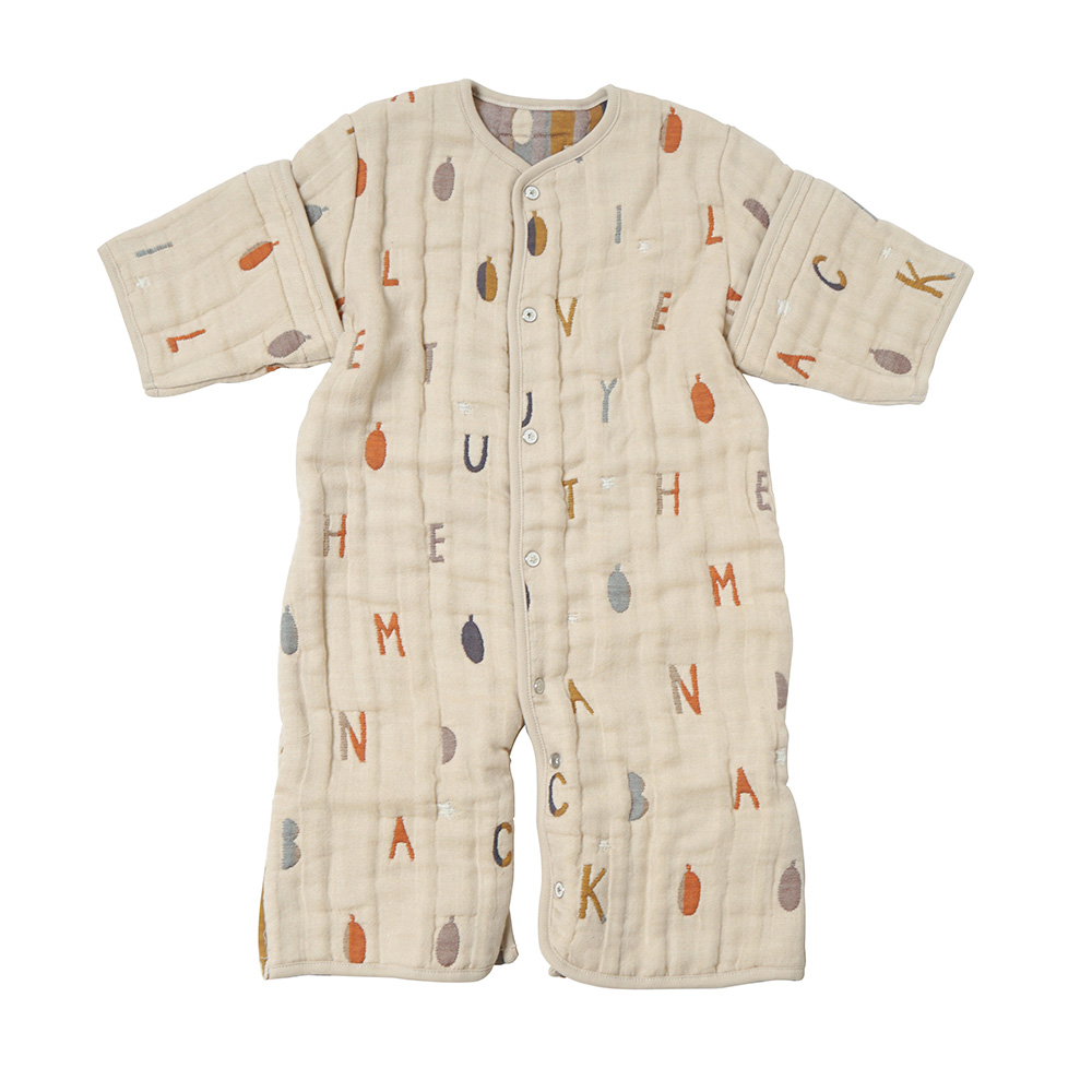 星辰字母羊毛六層紗可拆袖成長型睡袍 米色