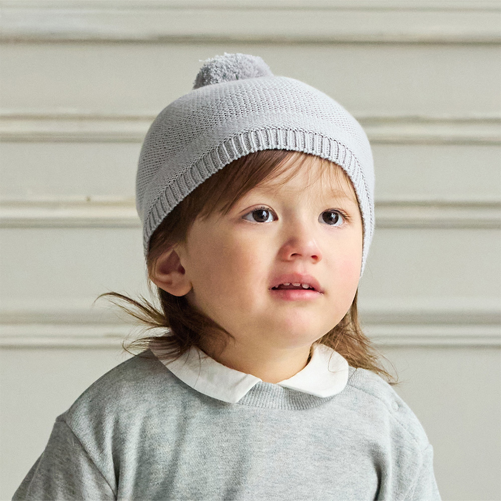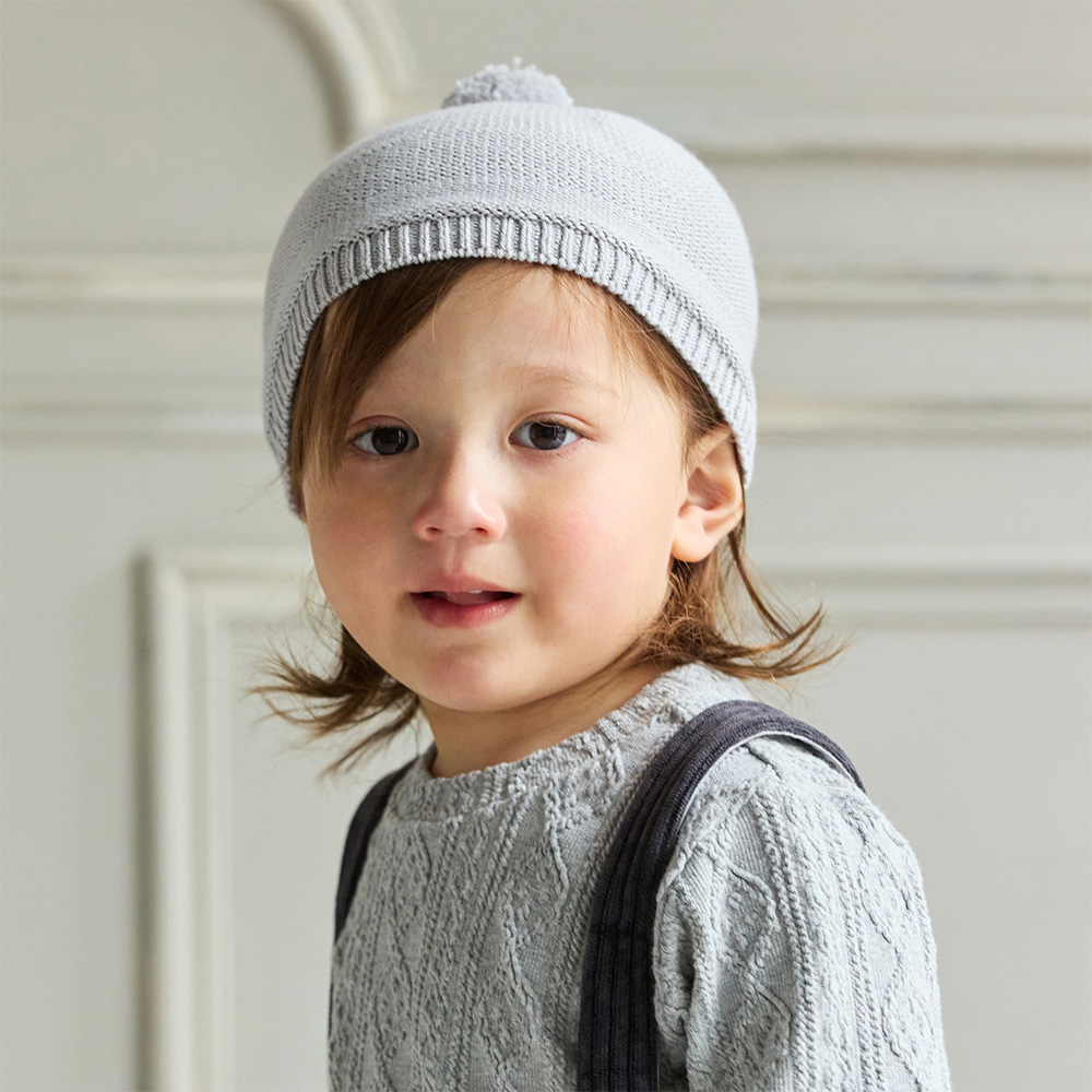 羽毛棉針織貝雷帽 灰色 48-54cm