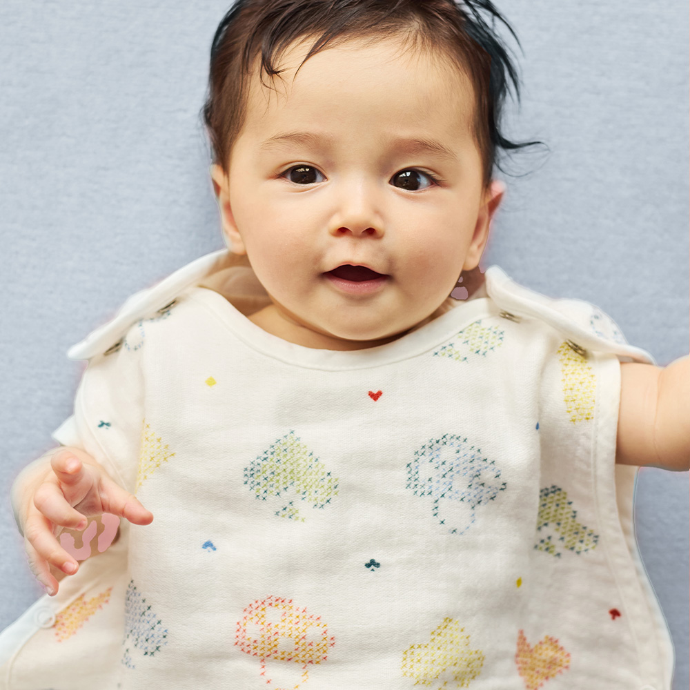將柔軟、透氣、吸水的棉與吸濕、速乾、光滑的天絲相結合,交錯編織成三層紗布。天絲是從木材中萃取,源自植物生態。纖維閉合式的生產過程十分環保,天絲製成的紡織品比棉更吸水、比絲更柔。 象徵 幸運x和平x珍貴 的夥伴,全新系列“champignon pique”蘑菇森友會閃亮登場! Champignon 在法語中是「蘑菇」的意思,代表"幸運與珍貴”。就像每個寶寶的降臨,都是爸咪和媽咪珍貴與幸福的結晶。"pique"在法語中有「刺」的意思,以細膩的刺繡工藝,一針一線精心描繪出充滿寓意的圖案,愛心代表著愛意;方塊就像鑽石般,象徵永恆;三葉草帶來希望與幸運;黑桃象徵和平;蘑菇則寓意幸運與珍貴。融合「幸運」與「幸福」的象徵,希望能帶來滿滿的正能量與幸福感,讓每一位穿上的寶貝們,都能感受到幸福與祝福的圍繞。 |