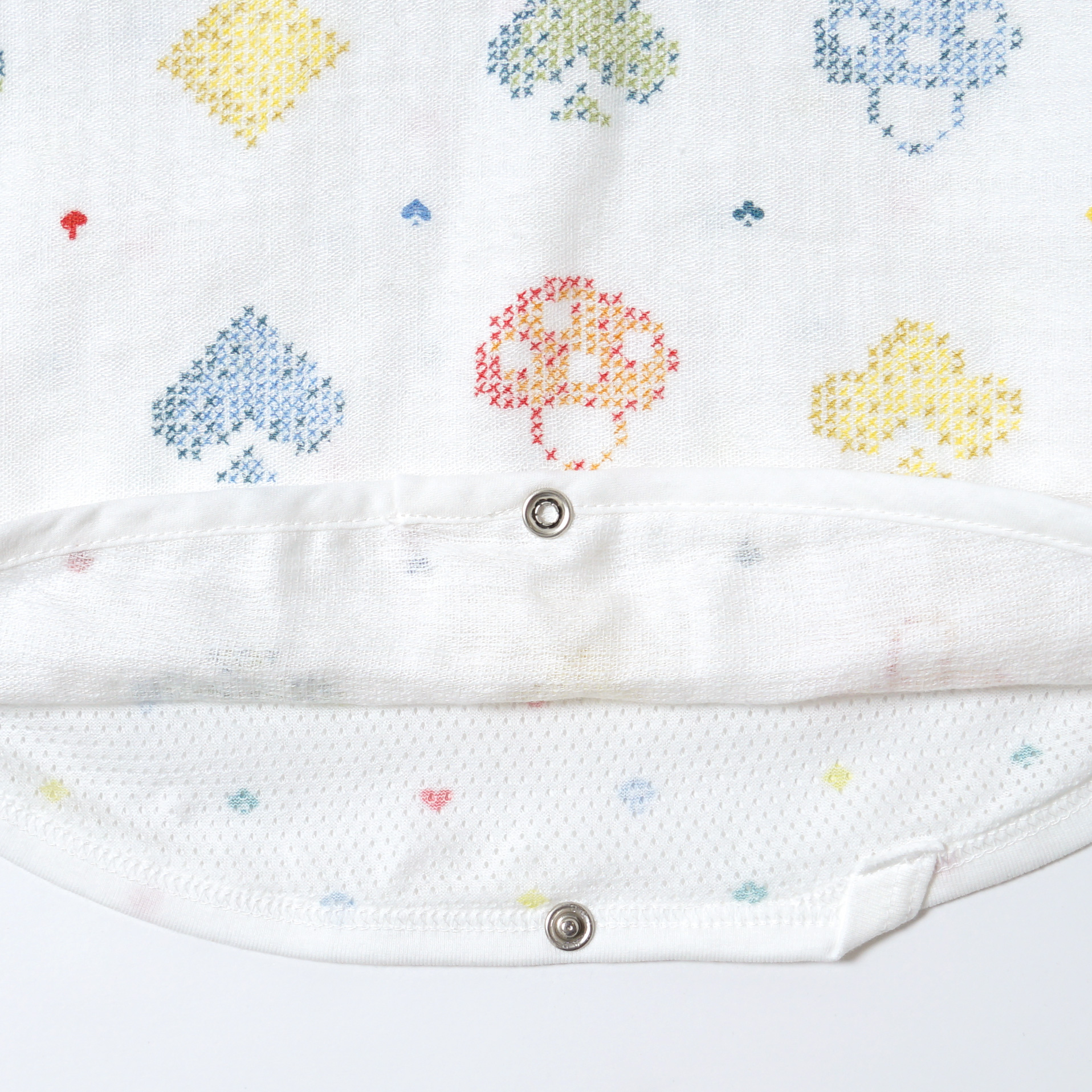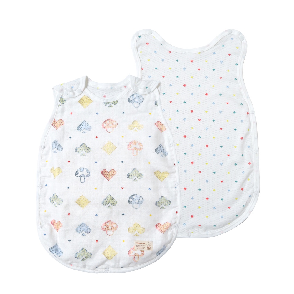 全新可拆式日式涼感紗——“PATTO MOTTO COOL” 瞬~拆~涼~感~ 象徵 幸運x和平x珍貴 的夥伴,全新系列“champignon pique”蘑菇森友會閃亮登場!Champignon 在法語中是「蘑菇」的意思,代表"幸運與珍貴”。就像每個寶寶的降臨,都是爸咪和媽咪珍貴與幸福的結晶。"pique"在法語中有「刺」的意思,以細膩的刺繡工藝,一針一線精心描繪出充滿寓意的圖案,愛心代表著愛意;方塊就像鑽石般,象徵永恆;三葉草帶來希望與幸運;黑桃象徵和平;蘑菇則寓意幸運與珍貴。融合「幸運」與「幸福」的象徵,希望能帶來滿滿的正能量與幸福感,讓每一位穿上的寶貝們,都能感受到幸福與祝福的圍繞。 |
