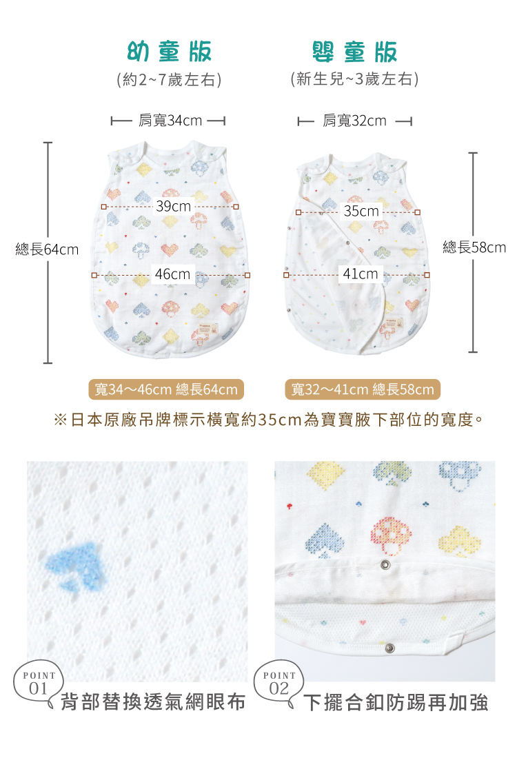 蘑菇森友會 瞬拆涼感天絲三層紗防踢背心 嬰童(可拆替換透氣排汗網眼布)