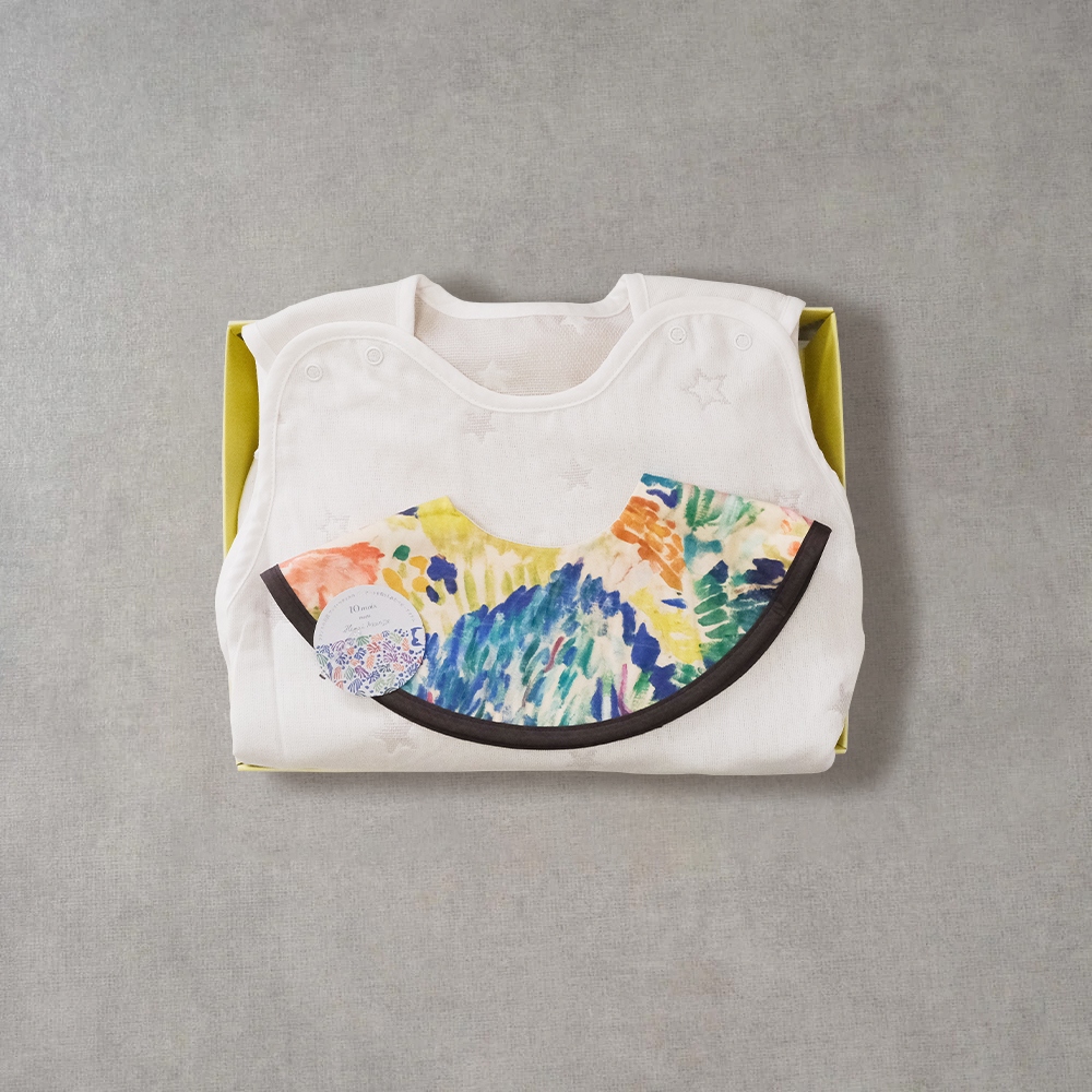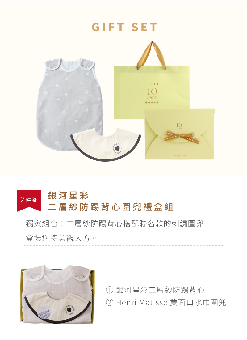 銀河星彩二層紗防踢背心圍兜禮盒組 米白