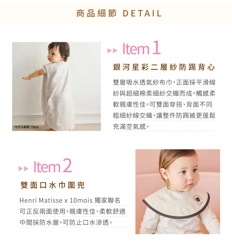 - 搭配雙面口水巾圍兜