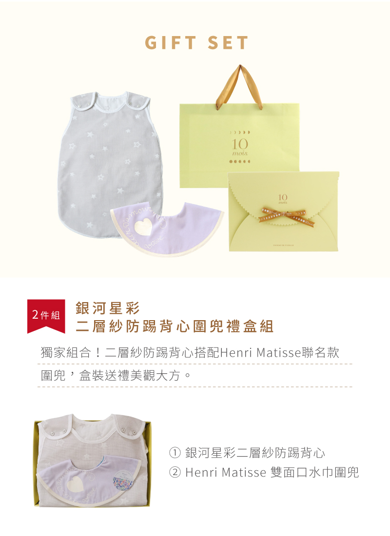 銀河星彩二層紗防踢背心圍兜禮盒組 紫色