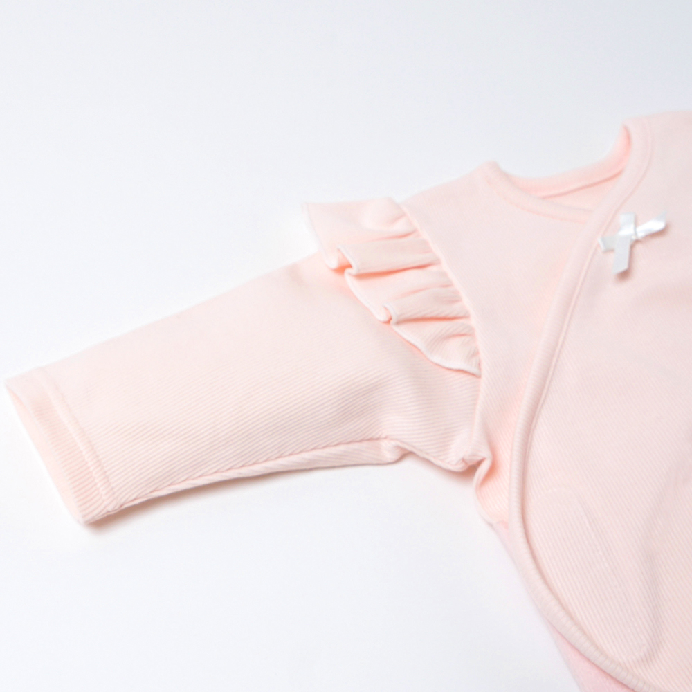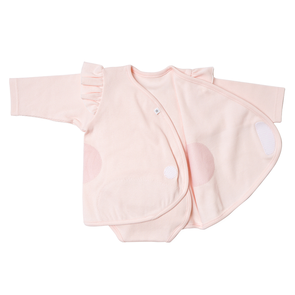PATTO SATTO OMEKASHI 秒脫浪漫荷葉長袖包屁衣 粉紅色 50-60cm