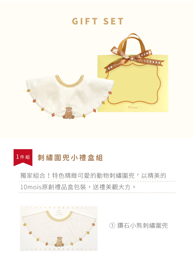 鑽石與小熊刺繍點綴,搭配波浪花邊