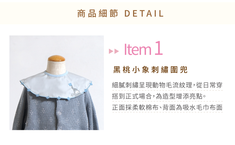 - 黑桃與大象刺繍點綴,搭配波浪花邊