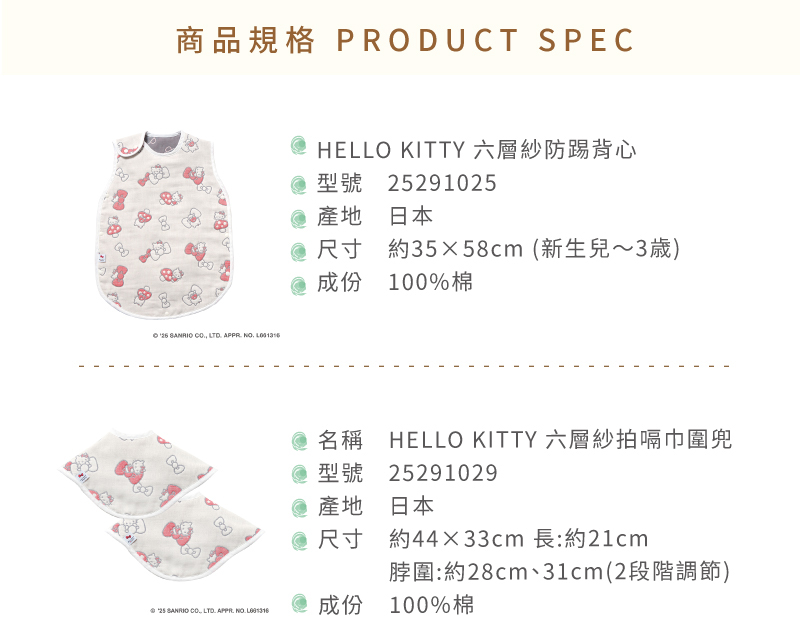 【三麗鷗聯名】HELLO KITTY 六層紗圍兜防踢被組