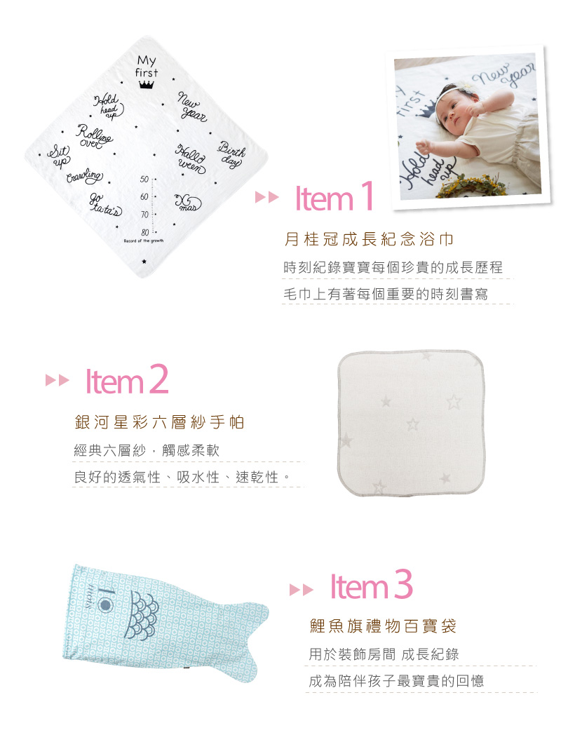- 月桂冠成長浴巾+鯉魚旗+銀河星彩六層紗手帕