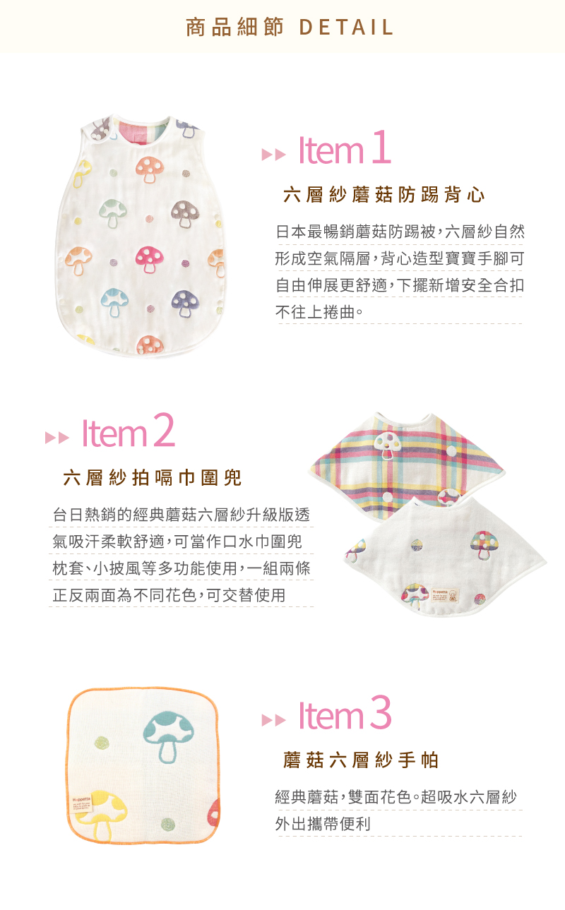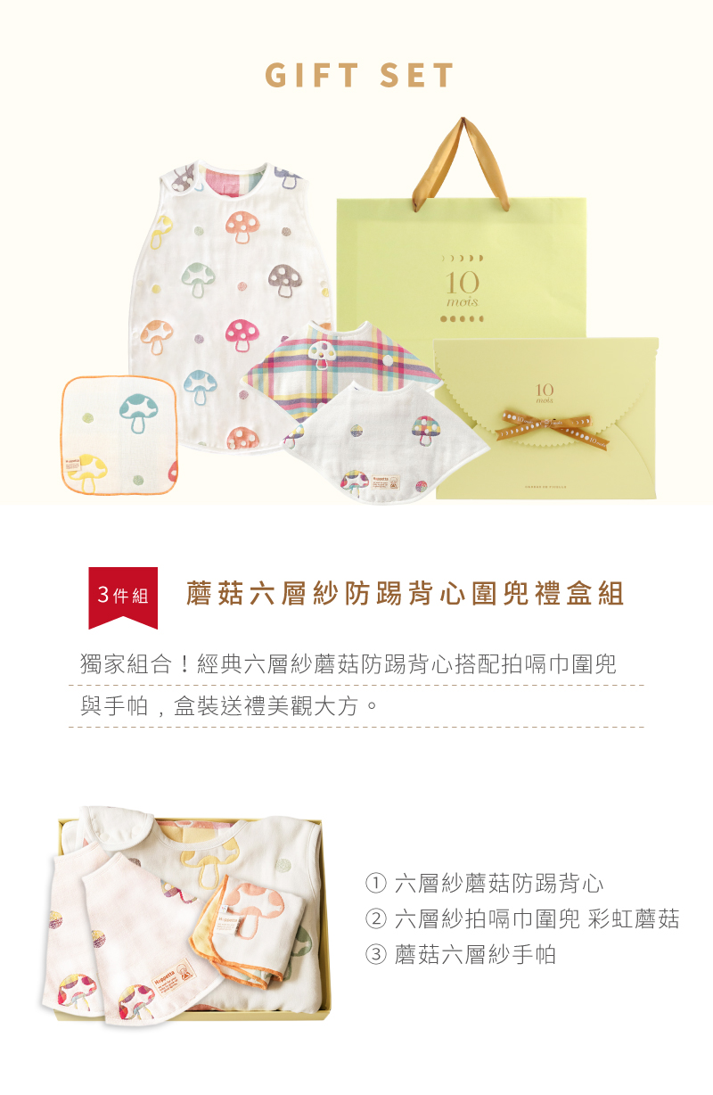 - 防踢背心搭配同款拍嗝巾圍兜與手帕
