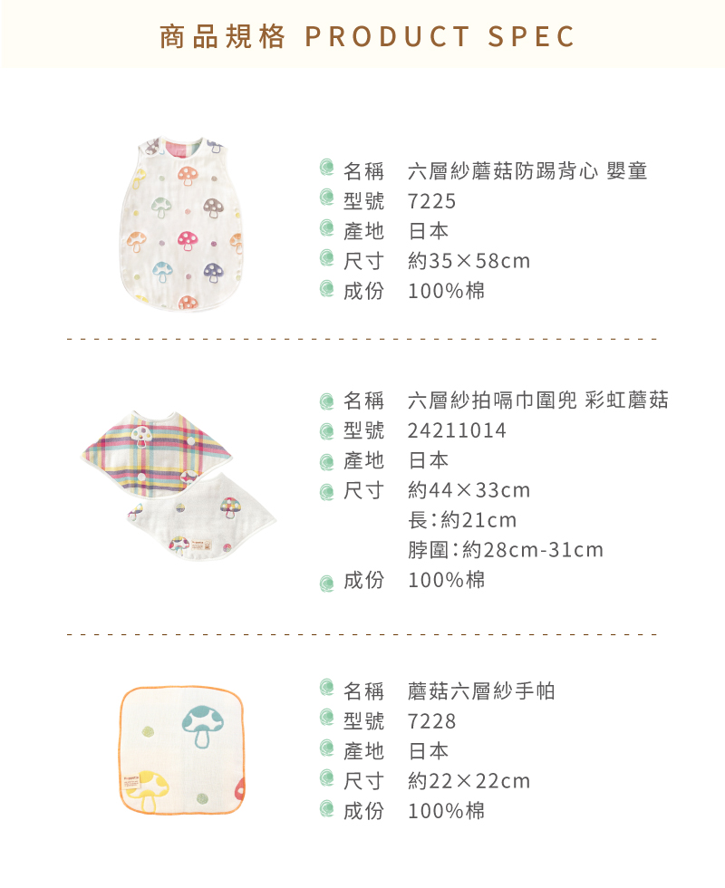 六層紗拍嗝巾圍兜 彩虹蘑菇 x1