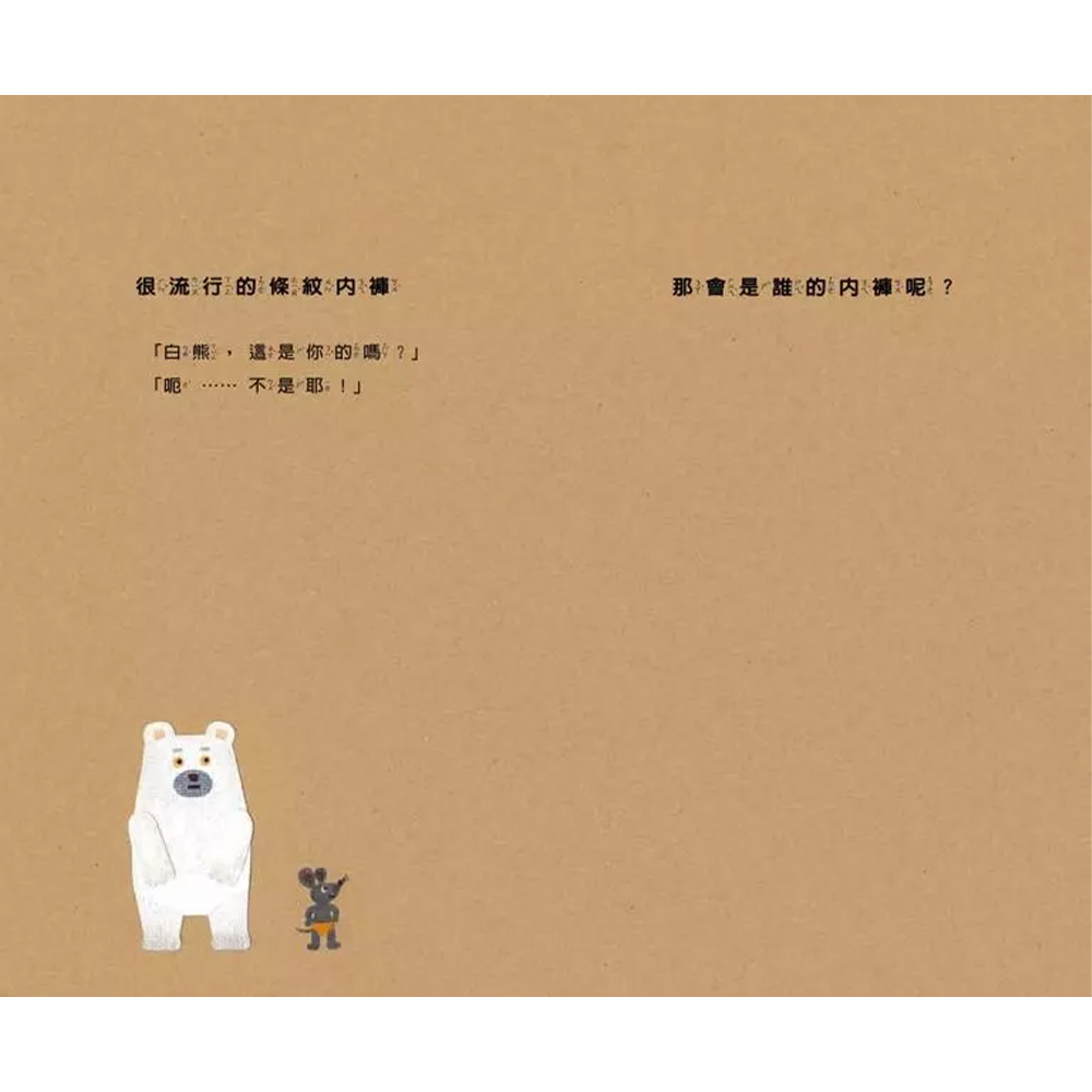 - 書腰設計成紅色內褲,能穿能脫的可愛設計,戴在白熊頭上也別有一番風味