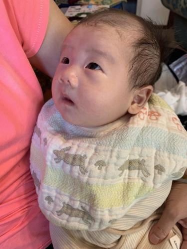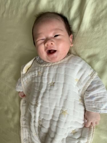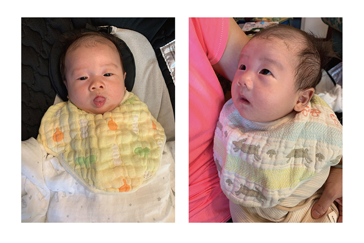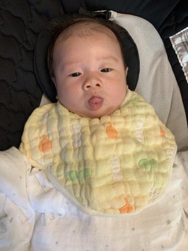 雖然新生兒寶寶還不太會流口水,卻很會溢奶或吐奶, 所以剛喝完奶或要拍嗝時我都會幫寶寶圍上拍嗝兜,避免 奶溢得到處都是, 10mois的拍嗝兜面積夠大、吸水力好、材質也很親膚, 可以拍嗝時圍在寶寶脖子上或是放在大人肩膀上,很方便。 此外圖案也是好可愛,正反兩面都不一樣,超級百搭各種衣服。